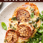 If you’re always looking for new ways to serve chicken for dinner, then this pizza chicken recipe will become a go-to meal for you! It’s juicy and flavorful and best of all, every single one of my kids devours it (which is always the ultimate win). It takes everything you love about pizza and turns it into an easy baked, high-protein chicken dinner!