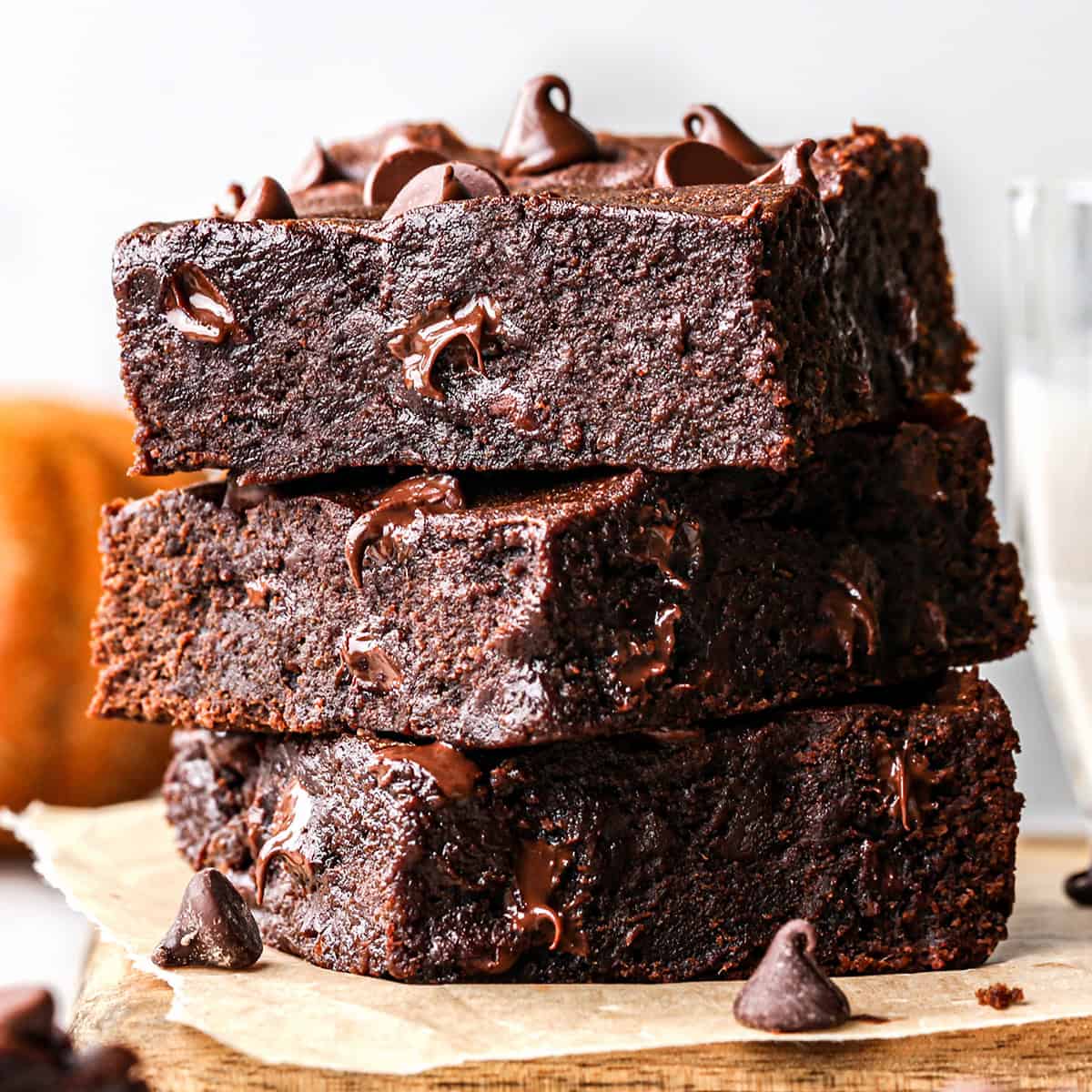 These Pumpkin Brownies are fudgy with a shiny, crinkly top and have pumpkin puree in the batter. This pumpkin brownie recipe is a favorite fall dessert for chocolate lovers and only take 30 minutes to make.
