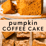 This pumpkin coffee cake is moist with a beautiful crumb and a delicious cinnamon crumb topping. It’s a cozy breakfast loaded with rich fall spices – a perfect morning treat!