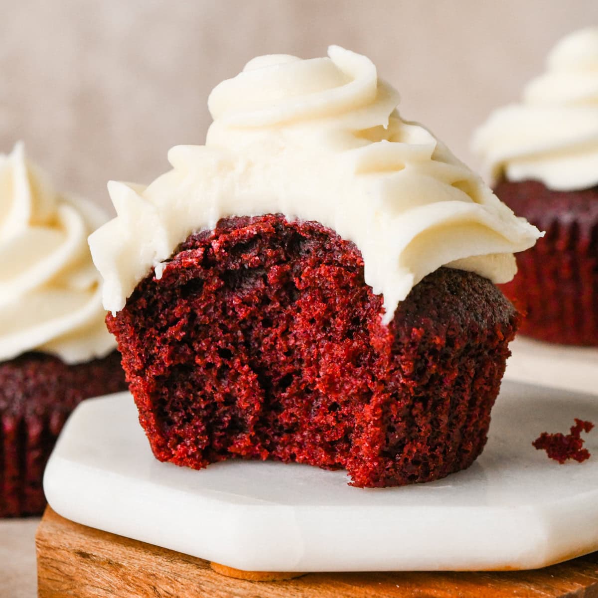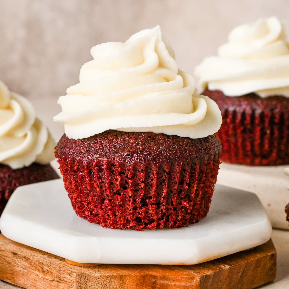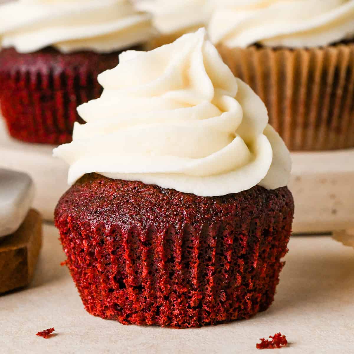 In this red velvet cupcake recipe, a blend of melted butter and oil creates the perfect texture, while a touch of cocoa powder adds flavor without being overpowering. Buttermilk and a splash of vinegar give them that bakery-quality softness and moistness!