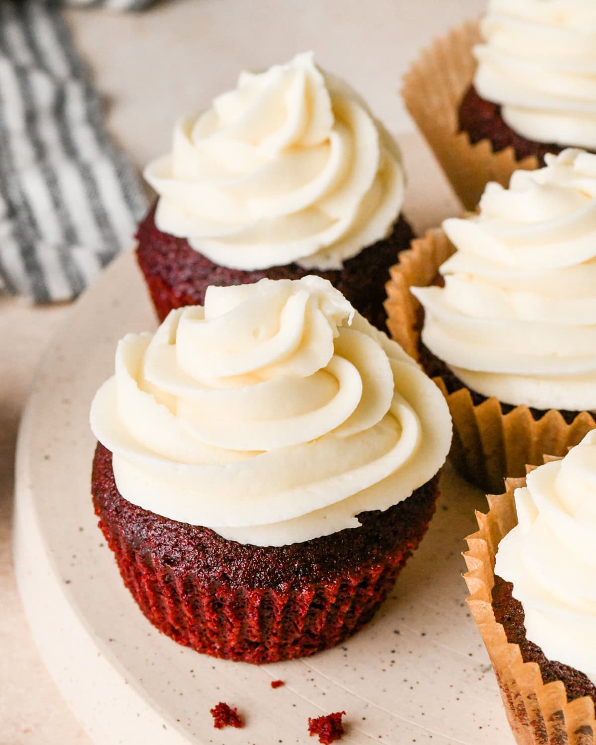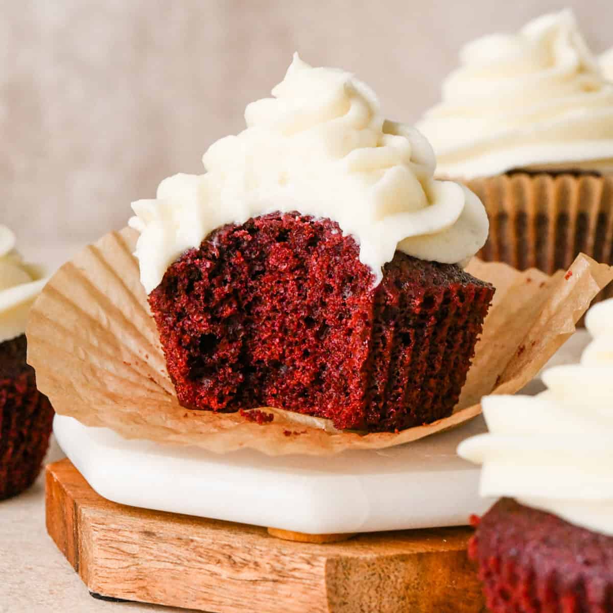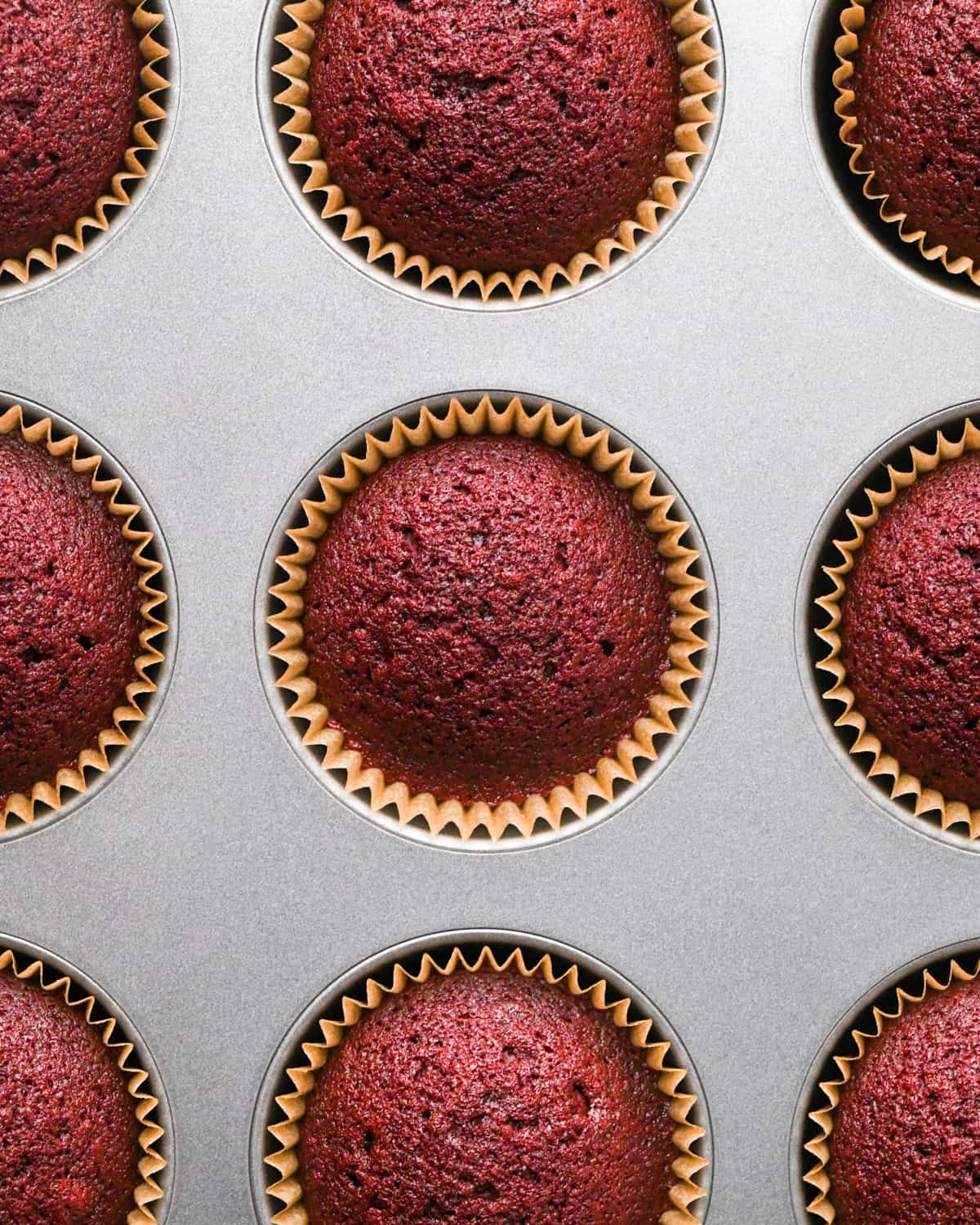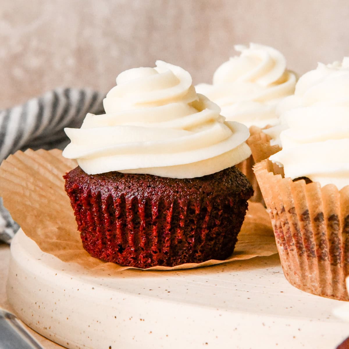 In this red velvet cupcake recipe, a blend of melted butter and oil creates the perfect texture, while a touch of cocoa powder adds flavor without being overpowering. Buttermilk and a splash of vinegar give them that bakery-quality softness and moistness!
